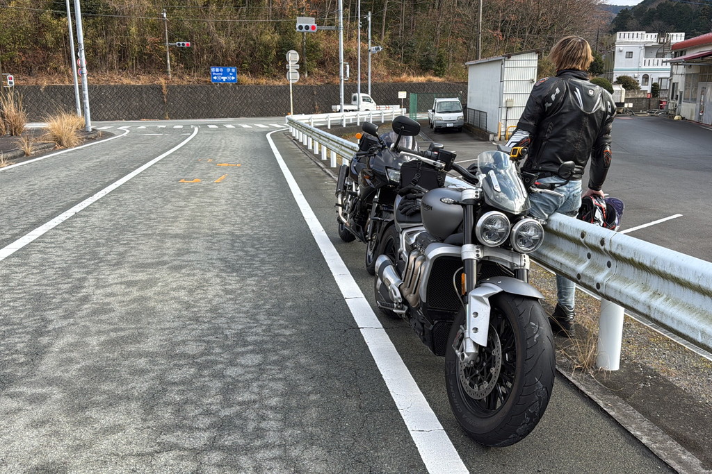 kurokiはAJさんの先導で、二つ目のワインディングである湯河原パークウェイを駆け上る。路肩には白く凍った雪がちらほら見える。