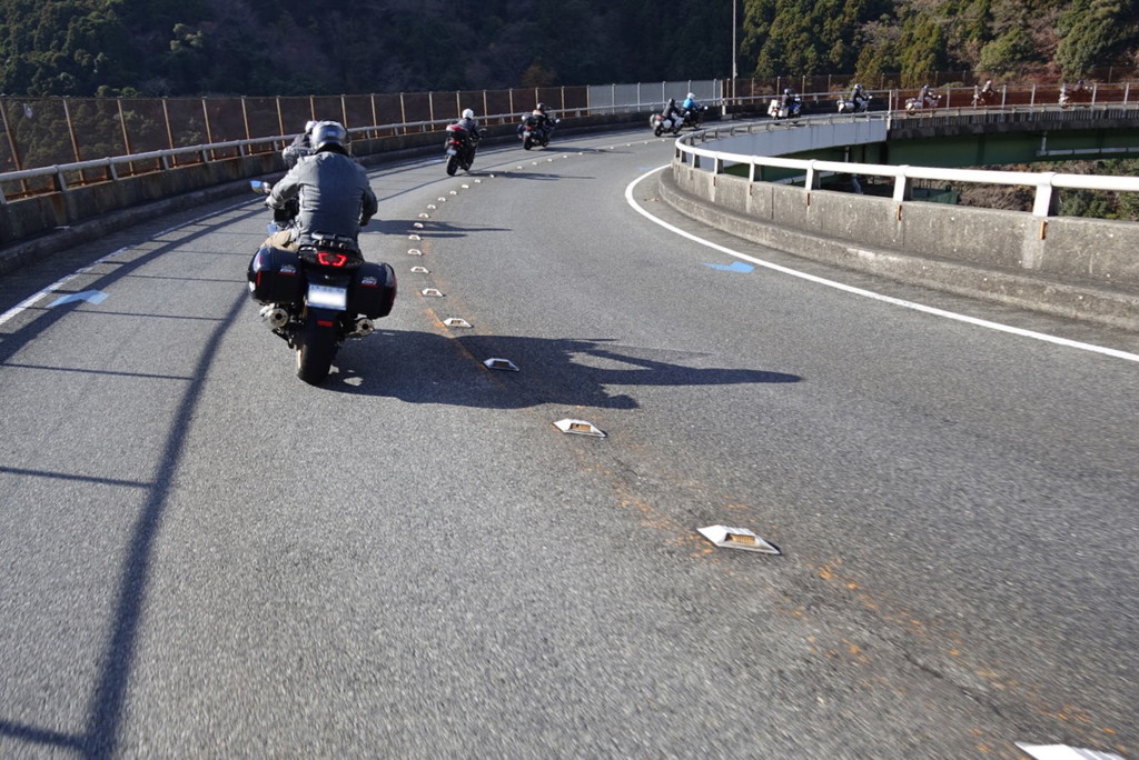 大柄なボディのFJR1300を、スムーズにラインに乗せて、コーナーを駆け抜けていく。