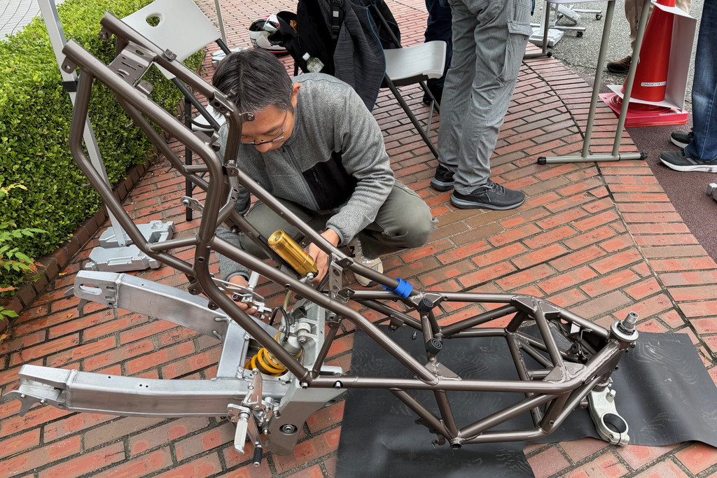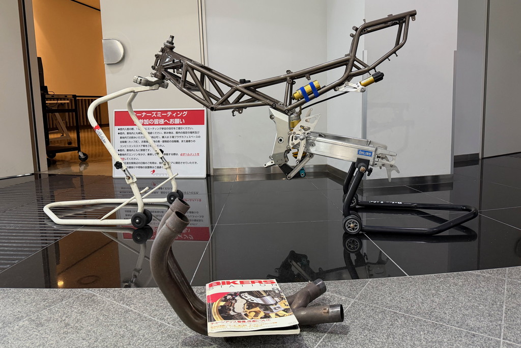 岡山のよっしーさんが持ち込んだフレームには、強烈な補強が入っていて、カスタム心を猛烈にくすぐられる。